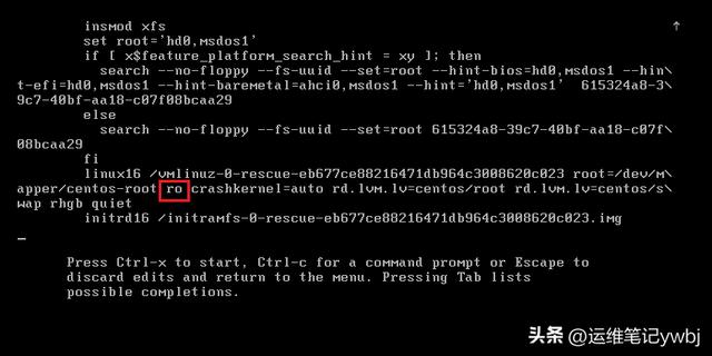 3:然后 “ctrl x” 保存开始进入单用户模式