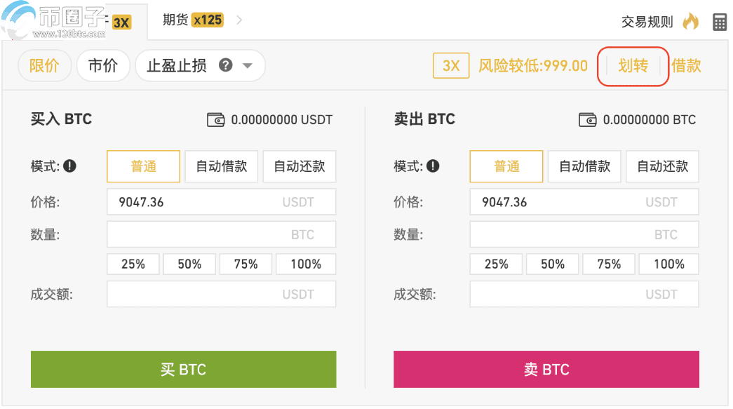 您开通杠杆账户后,可直接在交易页面划转保证金: