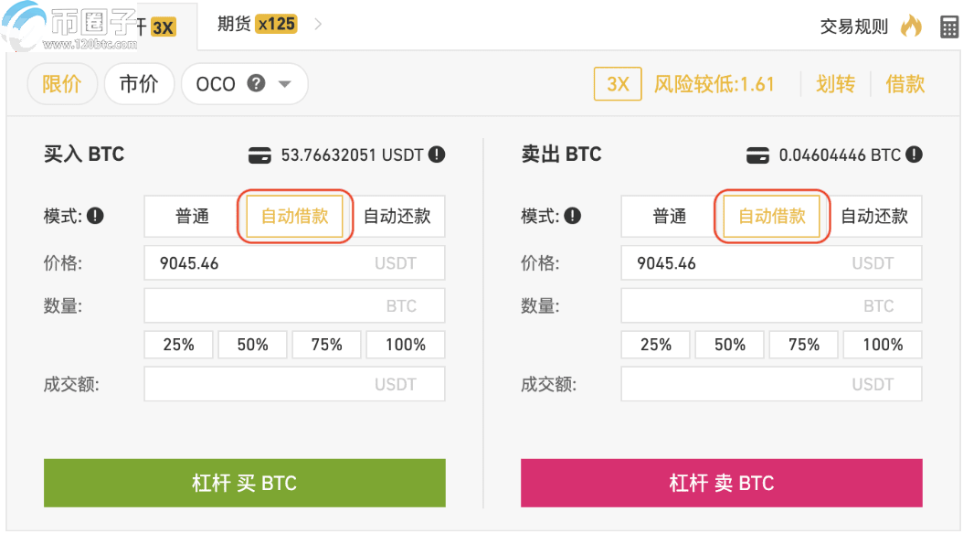 自动借款规则:用户可在杠杆交易页面使用自动借款功能。