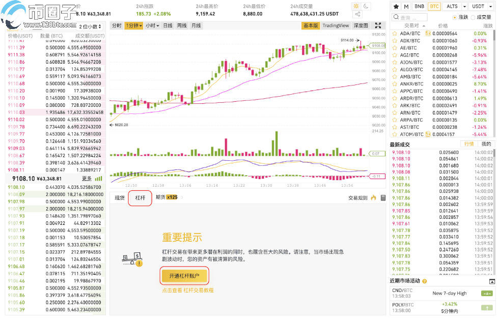 登录币安账户,如果你还没有账号可以新账号,您可以在交易页面选择【交易】- 【杠杆交易】点击【开通杠杆账户】。