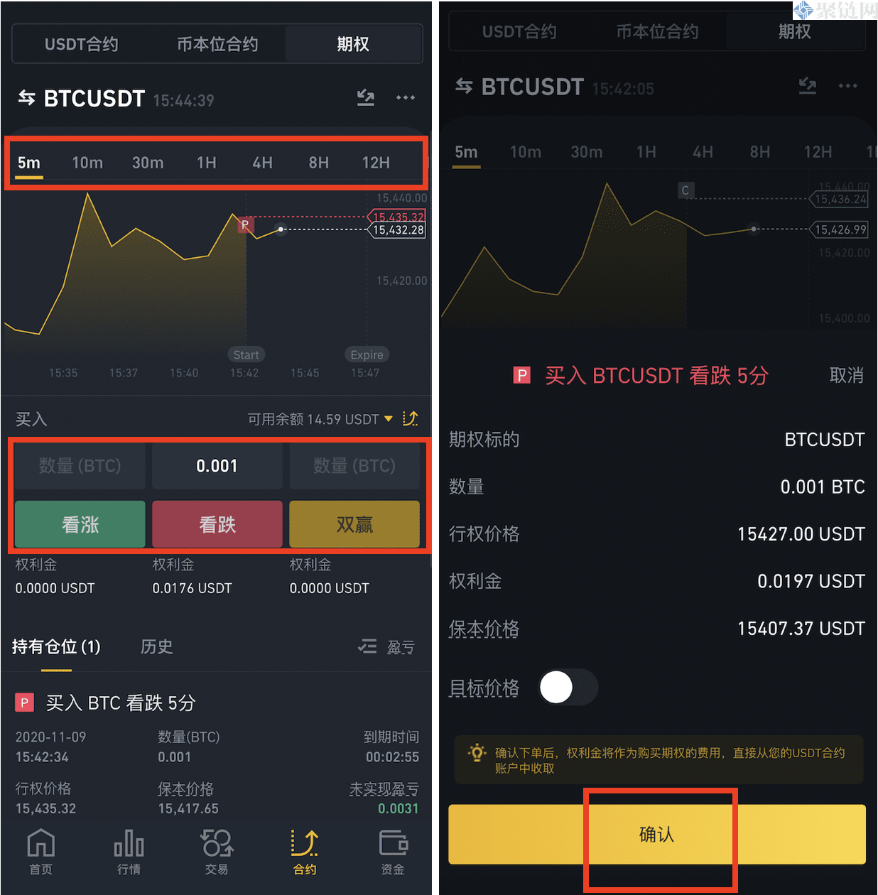 1.买入BTC看涨期权