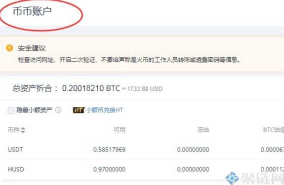 3、然后打开火币网(https://www.huobi.bs/)需要发送USDT的钱包,通常默认在币币帐户,这里的USD稳定币有5种(USDT,HUSD,GUSD,TUSD,USDC),你要选择的是USDT,切莫弄错。