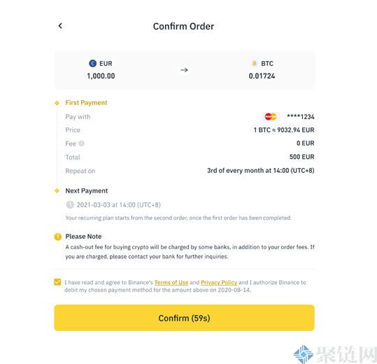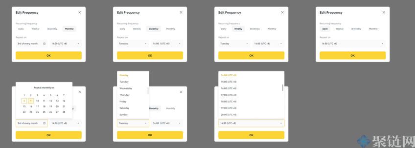 2、每天、每週、每两週或每月自动购买BTC或最喜欢的加密货币。