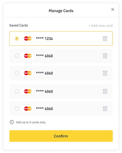 您将看到已保存卡片的列表。单击删除图标以删除卡。