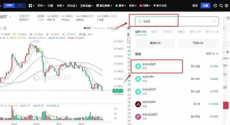购买KAS币只需要在其上架的交易所内购买就可,当前KAS币商家交由送有芝麻开门、抹茶交易所等等16家交易所,下文是在芝麻开门交易所购买KAS币的教程: