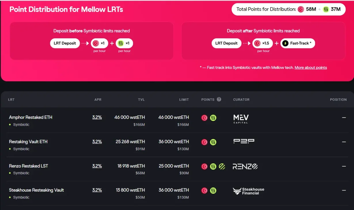 6 月4 日,Mellow 宣布与Symbiotic 合作,作为其生态系统中的一个模组化LRT 流动性再质押项目推出。