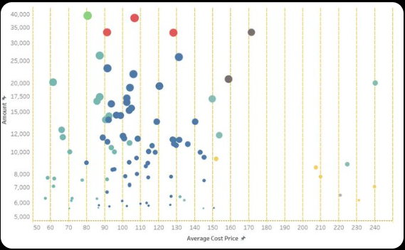 进一步研究持仓大户的成本。上图是持币大户的成本,以及持有量的关系图。从上图中我们可以直观的看到