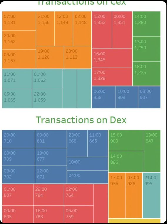 从dex和cex的转账可以明显的看出,资金更加活跃在交易所,并且是美国时区的资金。