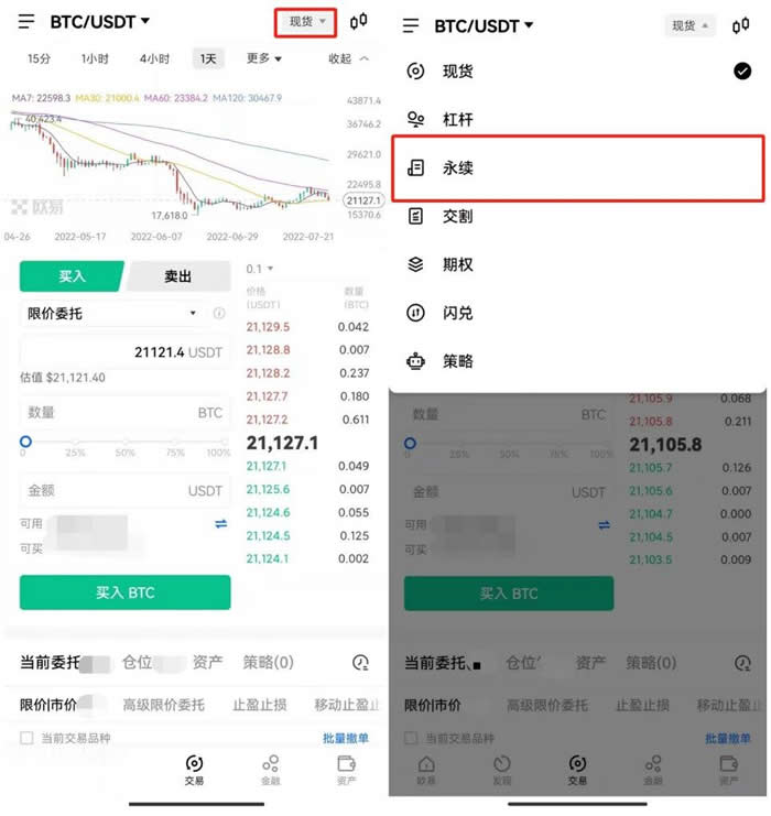 永续合约分为USDT保证金合约,币本位保证金合约,这里以USDT保证金永续合约为例。