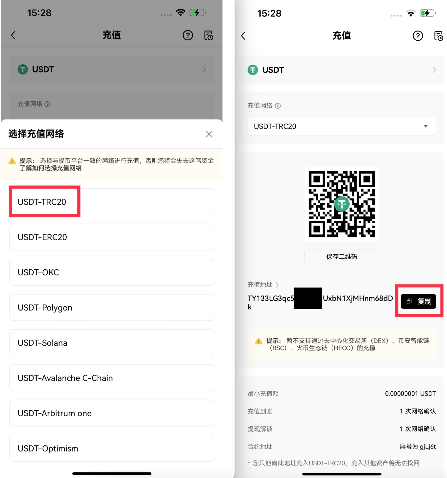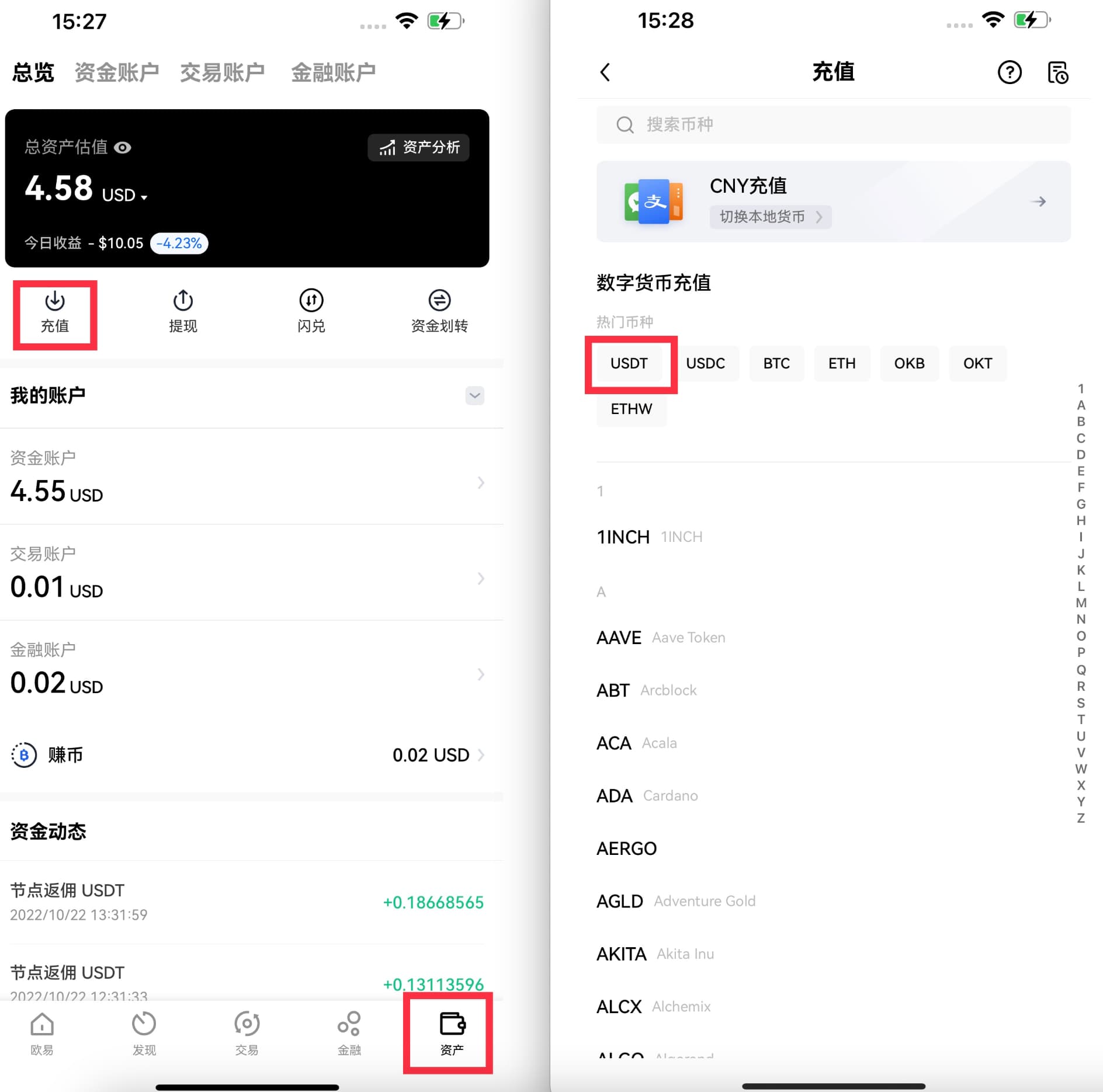 本文将以USDT充值为例为大家展示充值流程与步骤