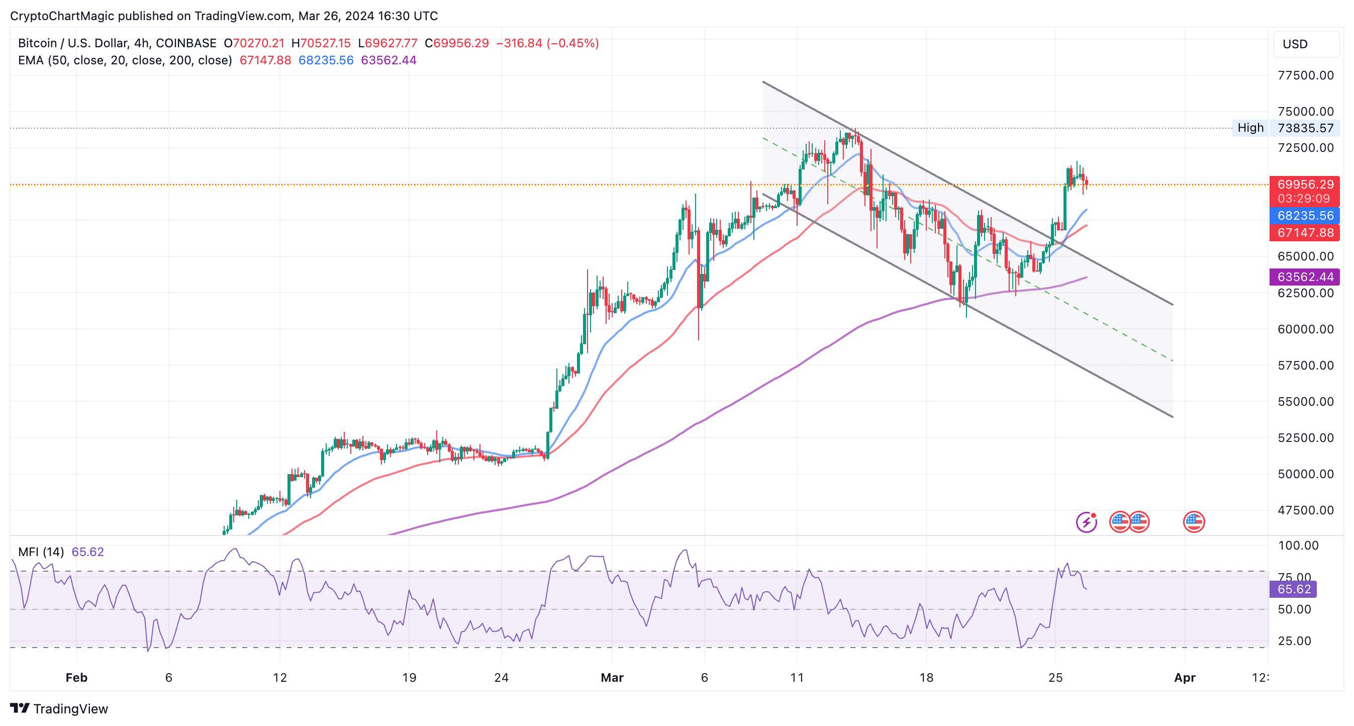 目前,比特币价格关键在 70,000 美元。预计价格将进一步上涨至历史新高,但这可能发生在另一轮获利回吐之后,随后逢低买入,最终可能突破 80,000 美元。