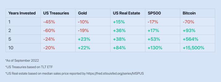 每个资产类别都有优势和劣势。例如,在高增长时期,股票往往跑赢债券和黄金。在经济低迷或高通胀时期,黄金往往比其他资产表现更好。比特币似乎同时具有股票和黄金的属性。它在经济扩张时期表现良好,许多人认为它在高通胀制度下的作用类似于黄金作为对冲工具。