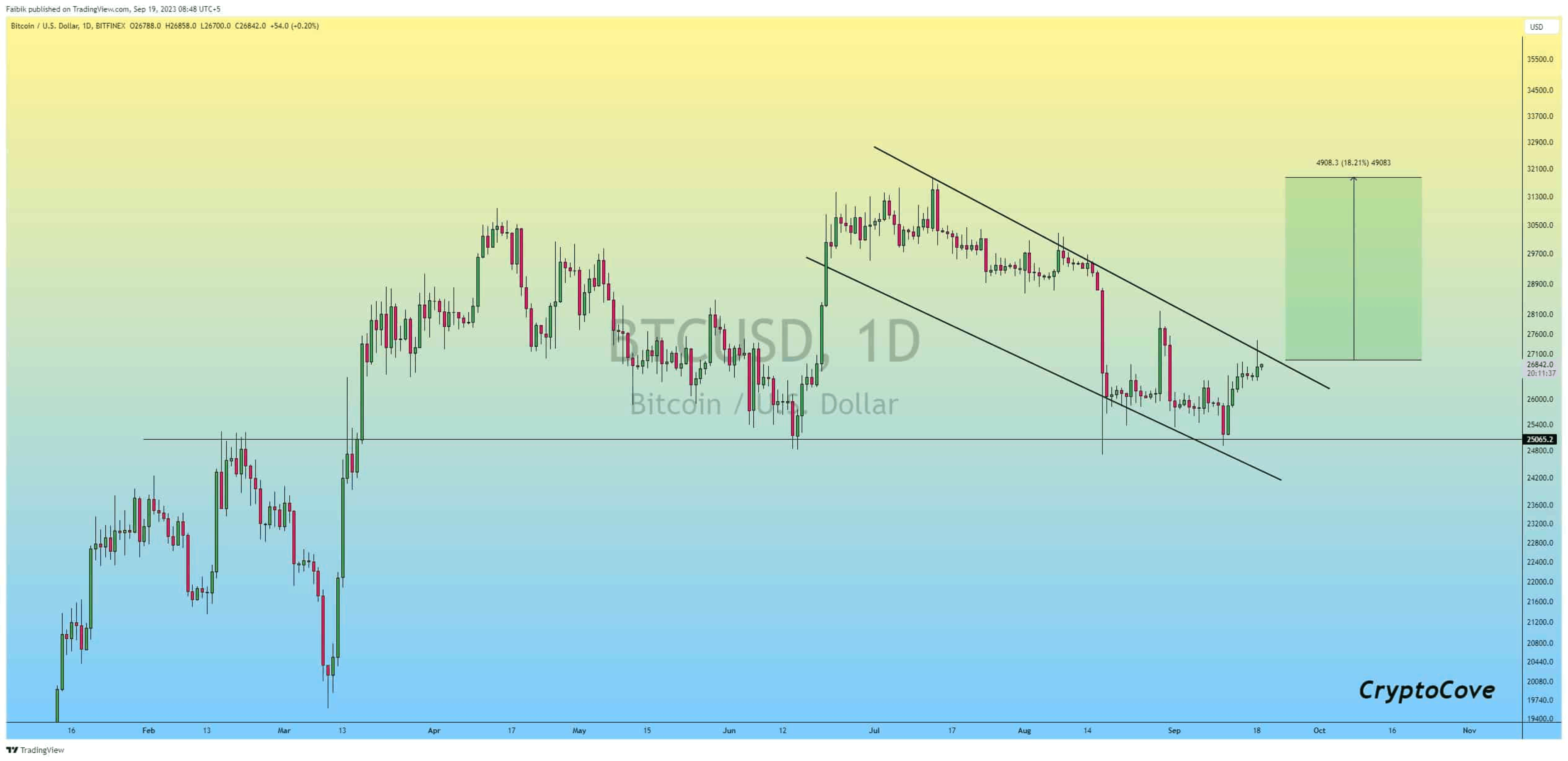 @CryptoFaibik等分析师和交易员 认为,现在是多头完全掌控局面并“征服 2.7 万美元阻力位”的时候了。他补充说,“如果多头成功”,投资者应该预计反弹目标是 31.800 美元阻力位。