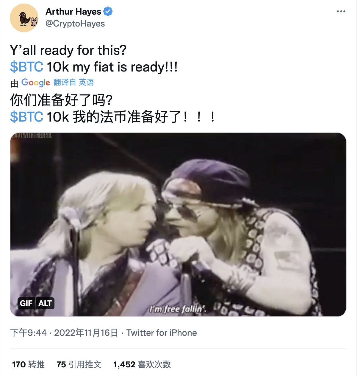 Hayes 的推文是在 FTX 崩溃的消息传出后发布的,这进一步影响了该行业的许多加密公司。