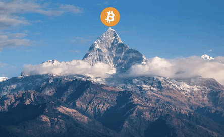 比特币粉丝在珠穆朗玛峰顶插上btc橙色旗帜