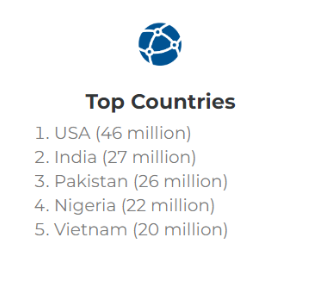 就国家而言,美国拥有最多的加密货币用户。这个国家约有4600万人使用加密货币;第二名是印度,用户数约为2700万;随后依次为巴基斯坦、尼日利亚和越南,都是加密货币用户数量排名前五的国家。