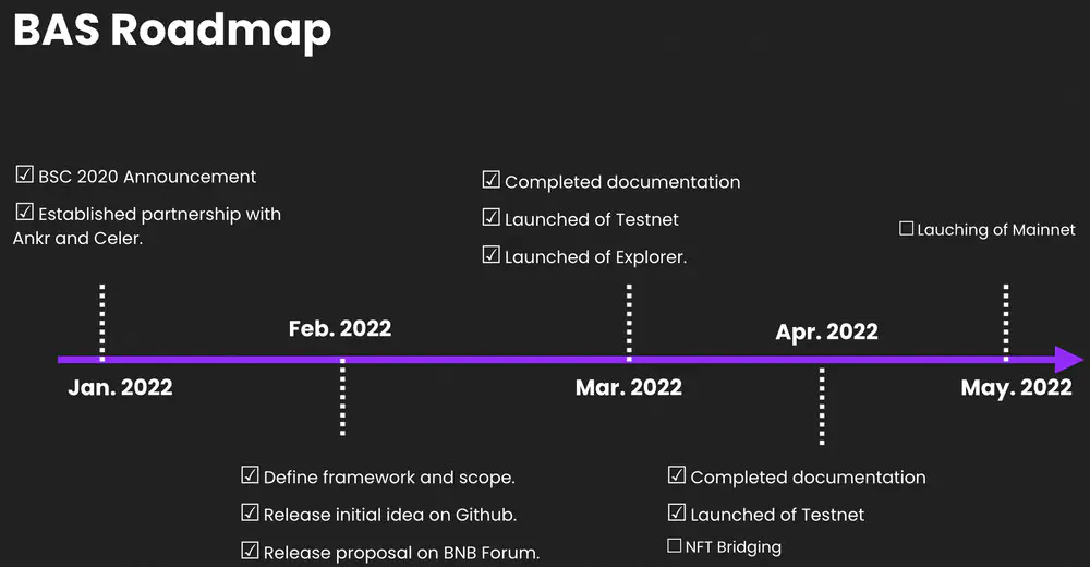 由于BAS与BSC紧密相连,这意味着拥有BAS的项目也是庞大的BNB Chain生态系统的一部分。这意味着您将能够轻松利用 BSC 上的流动性和支持基础设施,包括 DeFi、Dapps、流动性工具或 NFT 市场。