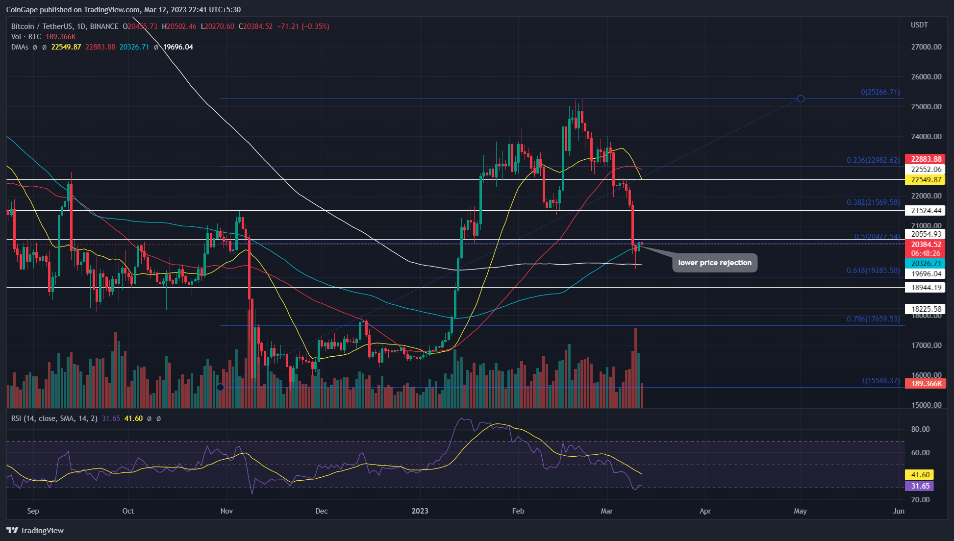 在最近加密货币市场下跌的情况下,比特币价格从 50%斐波那契回撤水平和 20500 美元的综合支撑下大幅下跌。这种崩溃本应加速抛售压力并将 BTC 价格推低至较低水平。