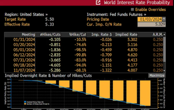 美联储3月会议将在本月20日结束。目前,市场预计美联储将自2021年3月开始加息以来的首次降息,降幅至少达到0.25%。这是一张美联储基金期货暗示未来美联储会议加息概率表。如你所见,截至1月3日,市场预计有75%的可能性降息0.25%。以上这些变量是相互依赖的。事件的先后顺序很重要,因为它将影响市场对美联储和美国财政部未来将提供或不提供多少美元流动性的假设。