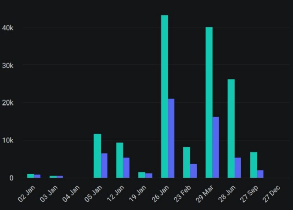 Deribit 统计数据显示,按行权日期看,本月的比特币期权持仓集中在 1 月 5 日、1 月 12 日、1 月 26 日三天,且看涨期权(Call)均高于看跌期权(Put)。其中 1 月 5 日、1 月 12 日正好契合路透社传闻的 1 月 3 日 / 4 日出结果及 21Shares/ARK 的结果出炉。