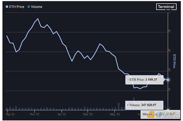 根据 The Defiant Terminal 的数据,去年 ETH 下跌了 59% 。尽管如此,它仍然保持了大约 20% 的主导地位,因为所有主流代币在这段时间内被“血洗”。