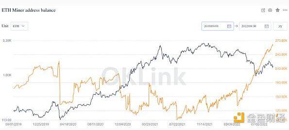 根据 OK 的数据,矿工余额,即矿工持有的 ETH 数量,也从去年的 114.255 增加到 261.849.增加了一倍多。这可能表明矿工在合并之前看涨,因为他们选择持有 ETH 区块奖励而不是出售代币。