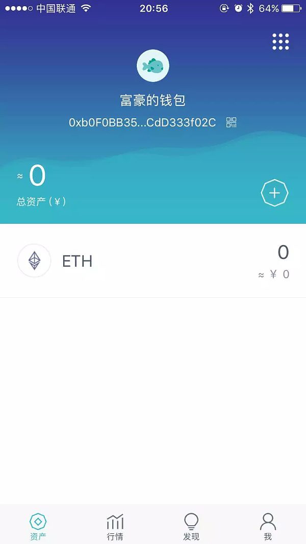 imToken钱包默认建好ETH(以太坊),如下图,是我在用的一个真实的钱包: