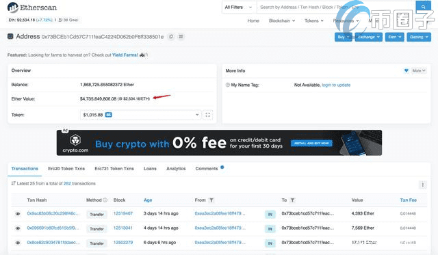 这里我随便查询了一个有着$47亿的钱包地址,可以获取到以下信息,这样我们就能知道这位大富豪每天的进出账了。