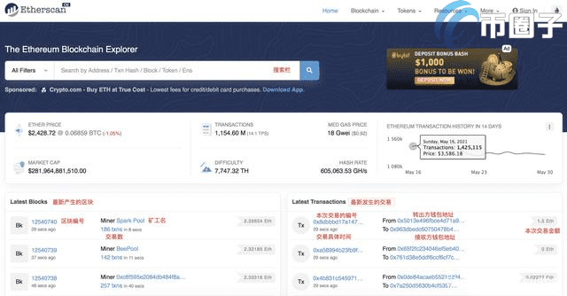 进入Etherscan官网首页后,可以获取到以下信息