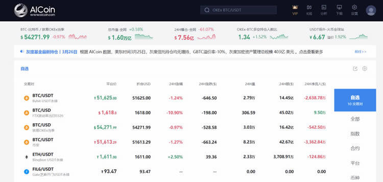 炒币软件必备,圈子里用的人挺多的。Aicoin适合技术分析派,里面有很多技术分析工具、画线图表,优点是划线可以保存,并且有多个平台的行情,提供大量合约相关数据。AICoin ,是一款行情软件,有国内的团队开发,有手机客户端,上面也有各类的资讯提供。