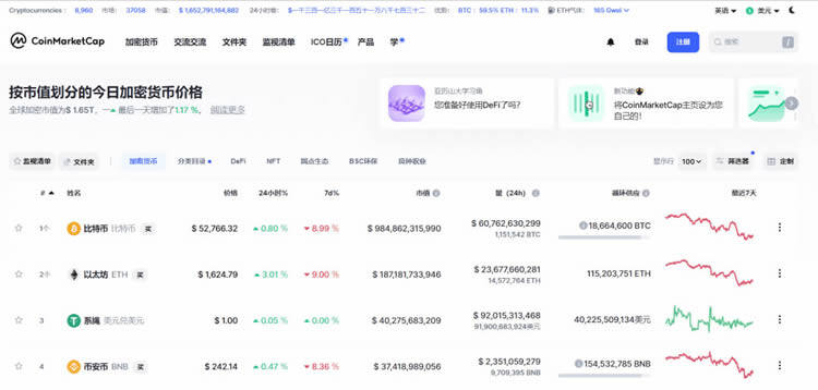 炒币少不了查币种信息、平台信息、项目数据等,推荐几个:CMC和非小号。