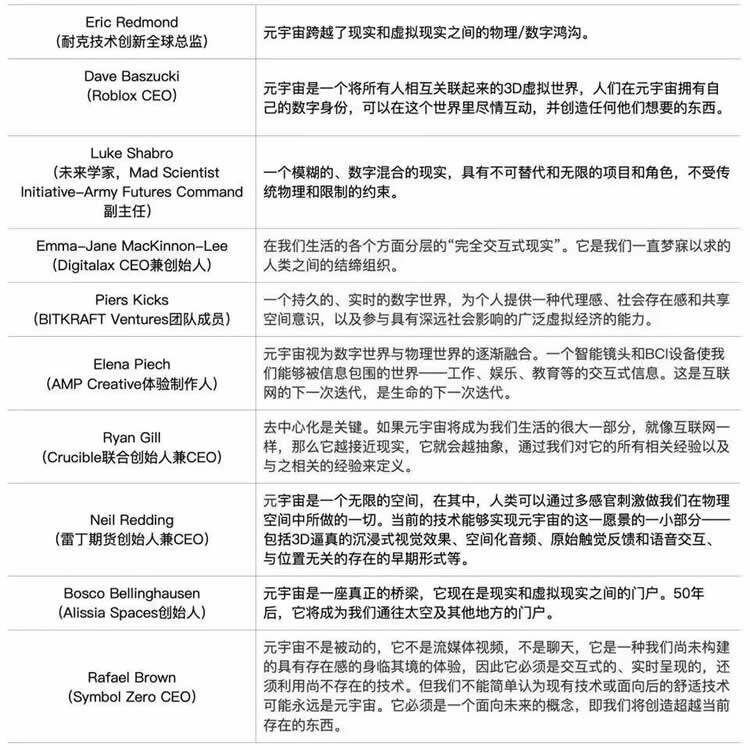 多位从业者和和专家从不同角度给出到对元宇宙的认识和界定