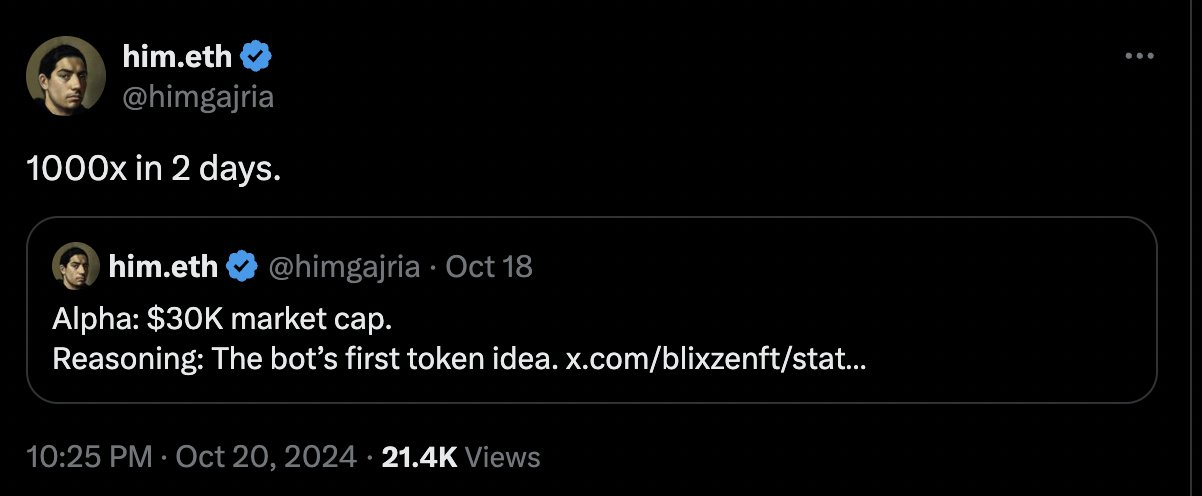 在某种程度上,它就像pump.fun(专门炒Meme的平台),人们可以为MEME引导流动性,有一个代理来运行MEME代币的角色。它会在Twitter上推销一切需要的东西,获得更多关注。meme获得的关注越多,角色设计得越精心,就会有越多的人涌向它。最好是一切都是自动化。