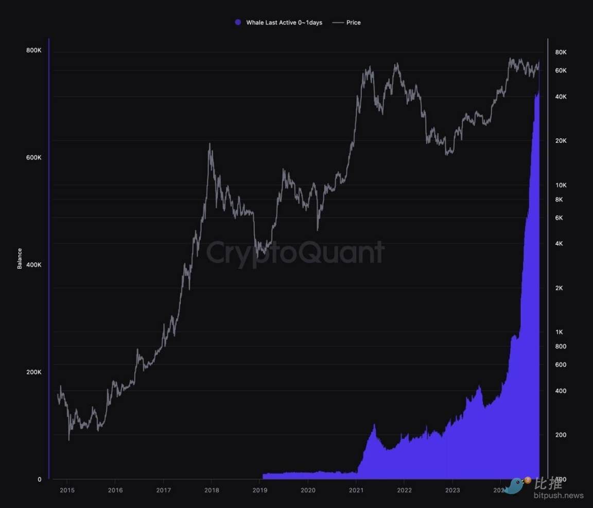 CryptoQuant 数据显示,巨鲸活动仍在增加,增持数量也越来越多。