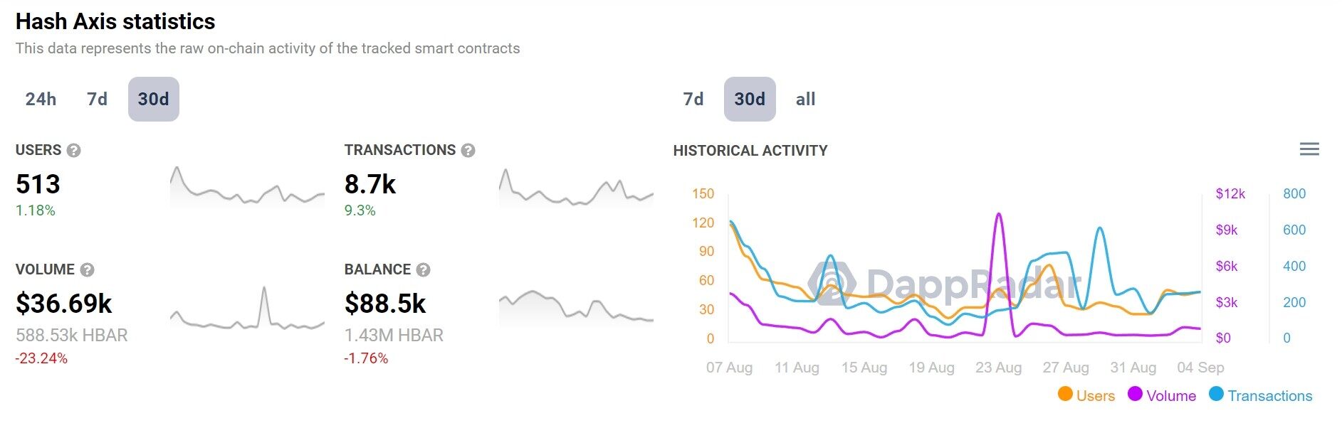 LG选择采用Hedera区块链,并非是一个显而易见的选择。据DappRader数据,过去30天以来,Hedera主要NFT市场Hash Axis交易量仅约3.66万美元,用户只有513个,相较之下,基于以太坊的OpenSea上的交易量达到3.3亿美元,用户超过30.5万个。