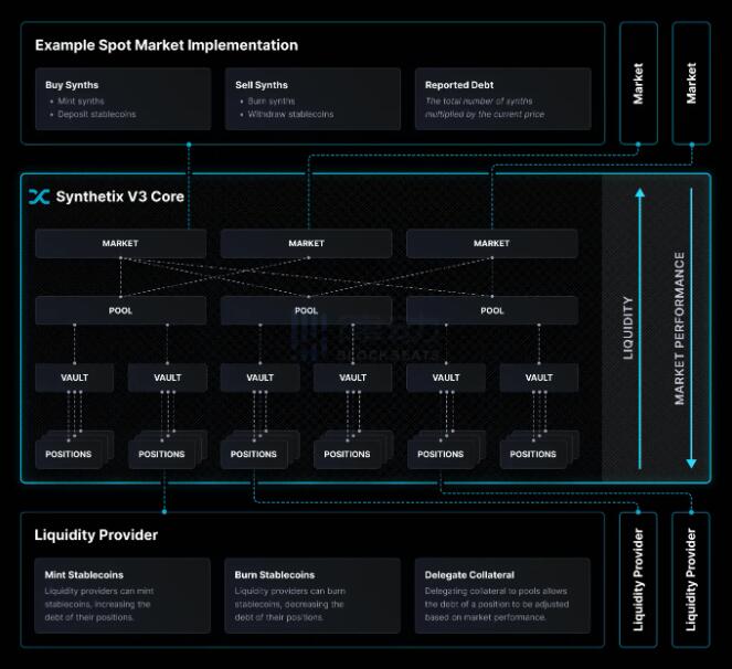 · 在 V3 上运行的传统市场——「传统市场」包括 V2X 系统内的所有合成资产和流动性。将其迁移到 Synthetix V3 需要在 Synthetix V3 内引入一个「传统市场」,V3 质押者可以进行抵押。这个市场的使用是一个过渡性解决方案,直到所有合成资产完全过渡到原生 V3 市场。一旦传统市场上线,质押者将能够将他们的头寸迁移到 Synthetix V3 上。