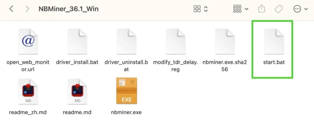 点击 start.bat ,启动挖矿程序,电脑开始挖矿。
