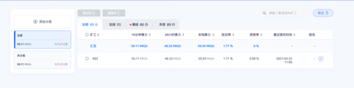 矿机运行一段时间后,就可以从鱼池的控制面板中看到算力和预计收益了。