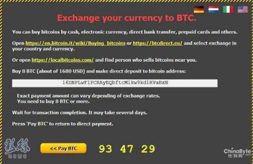 据百度百科,比特币敲诈病毒(CTB-Locker)最早在2015年初传入中国,随后出现爆发式传播。该病毒通过远程加密用户电脑文件,从而向用户勒索赎金,用户只能在支付赎金后才能打开文件。