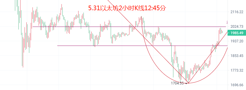 4小时k线交替上行至布林线,上方过高至2000附近,k线进入三连跳第三步,明显,放量上行,和DEA也向上扩散,k线目前处于MA均线上方横盘修复,走势显示月线结束,U型过度入顶,短时间内见顶于2030,所以突破2030的概率不是很大,进入1950-的区间