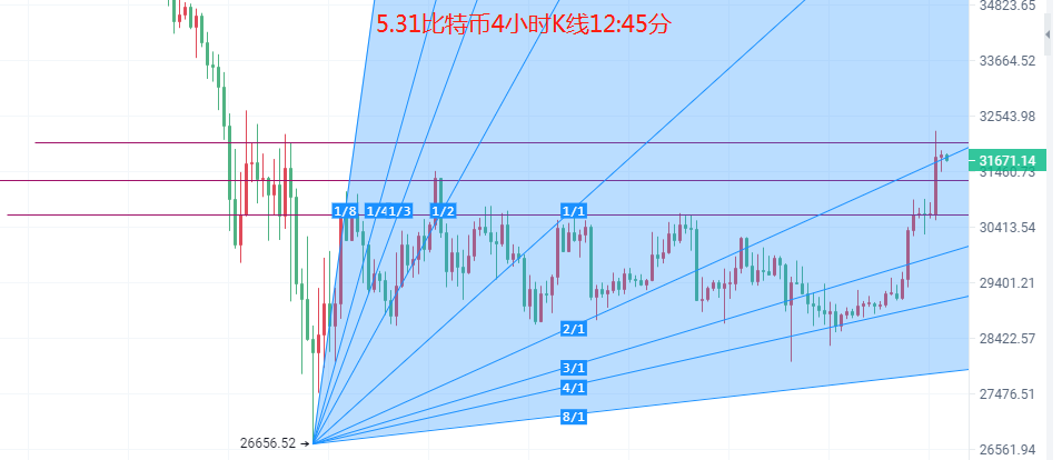 目前4小时k线围绕布林带中上轨交替上行,上方不断抬高,KDJ开始收口,k线大概率承压31500附近,MACD缩量受阻。今日横向修复区间收窄,MA均线收口,1小时线开始三级跳,放量,KDJ上行短线受阻,综合判断空头空区间不大,重心偏熵数字币钱包高。