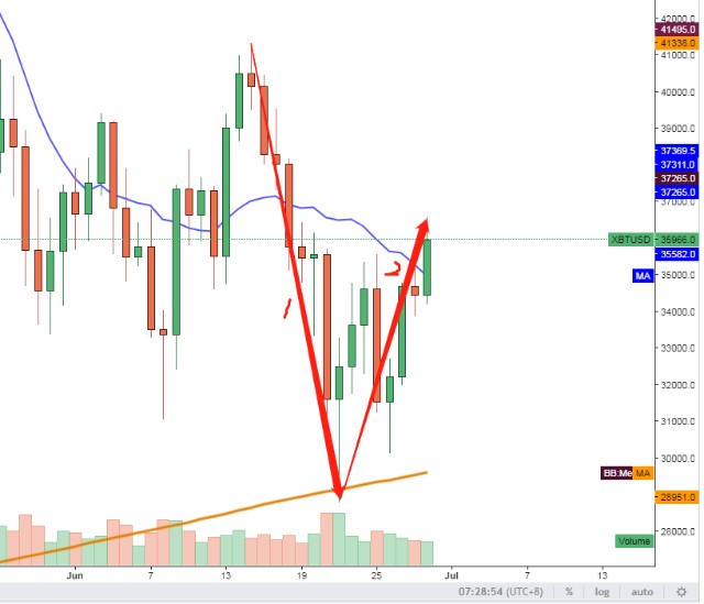 波浪的低点踩在黄金线上。这条金线在未来还是一个支撑。