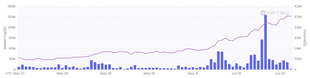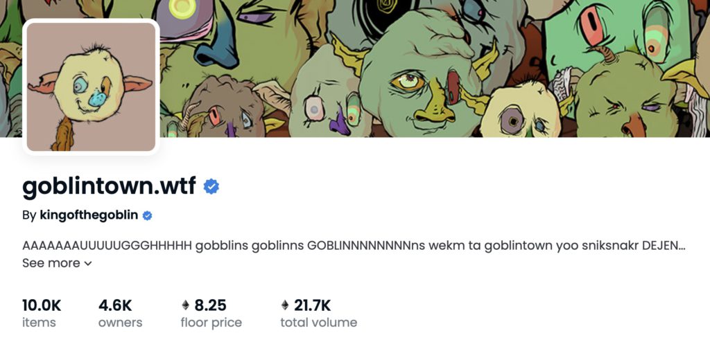 根据NFT的说法。GO数据,哥布林NFT的市值在一周内从约2700万美元增长到目前的1.52亿美元,跃升超过550%。目前稀有物品的最高销售额已经达到了77.75ETH(目前价格约为14万美元)。