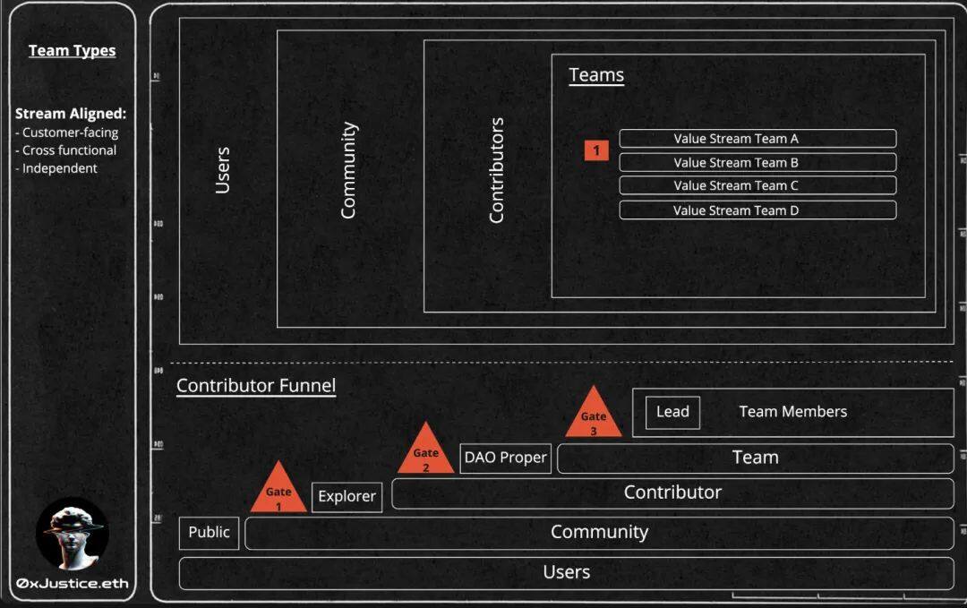 这些观察结果可能很有趣,但是如何将它们实施并应用于已经运行的 DAO 上呢?好消息是,这并不是 DAO 所特有的挑战。有一个 Team Topologies 的研究机构,还有一种称为 Inverse Conway Maneuver 的技术,我们都可以申请使用。