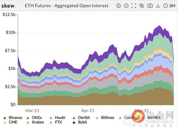 如图,4月中旬至5月21日,以太坊累计未平仓量(OI)上涨。然而,最近的暴跌可能已经“重置”了整个市场。