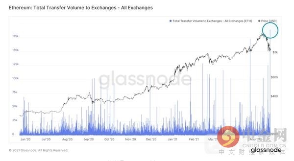 在ETH价格暴跌之前,是其最大一次流入交易所平台。23日,约有199,947 ETH或4.45亿美元存入所有交易所,如下图所示: