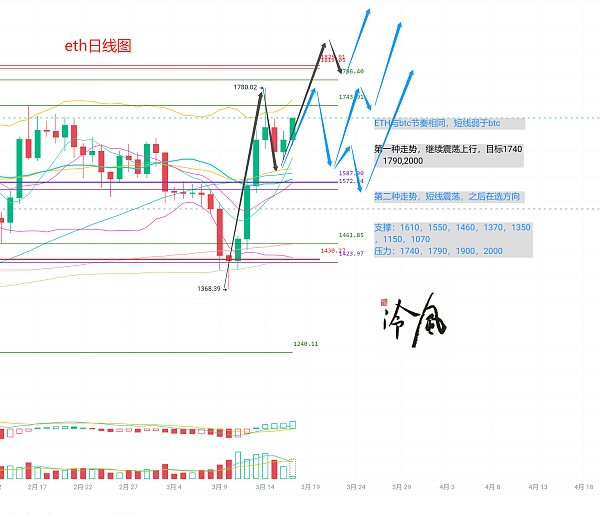 BTC短线支撑23800-24200美元,强势支撑23300美元,短线压力25300-26000美元。美三大股指昨晚全线反弹,当美国的银行波及到欧洲瑞信申请政府保护之时美联储终于出手救世了,鲍威尔说随时可以为合格的机构提供流动性救助。现在不是讨论如何加息,而是讨论如何救市的时候了,因为一但流通性缺失,通胀会演变成滞胀了。因此对23日的议息大家可以适度乐观对待。