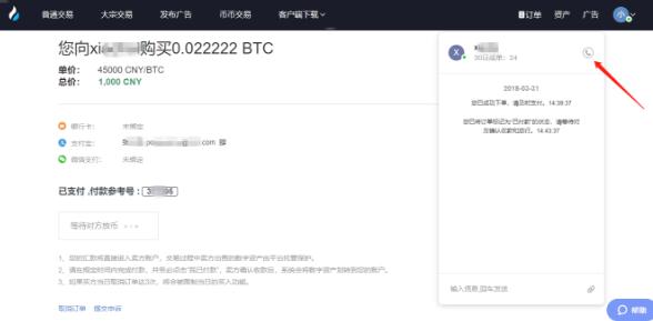 注意: 1、如果点击“已支付”5分钟后,您还没有收到币,可以点击虚拟电话图标,联系卖家。