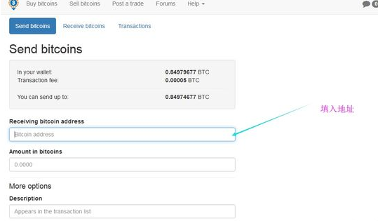 从其他平台提币到火币的界面,如下面截图的localbitcoins.com,就是要填入这个地址,点击发送,就可以把币发送到火币。