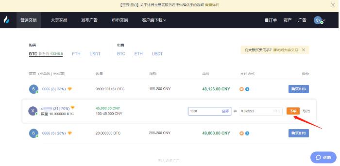 第一步:点击「法币交易」,跳转至如下交易界面:
